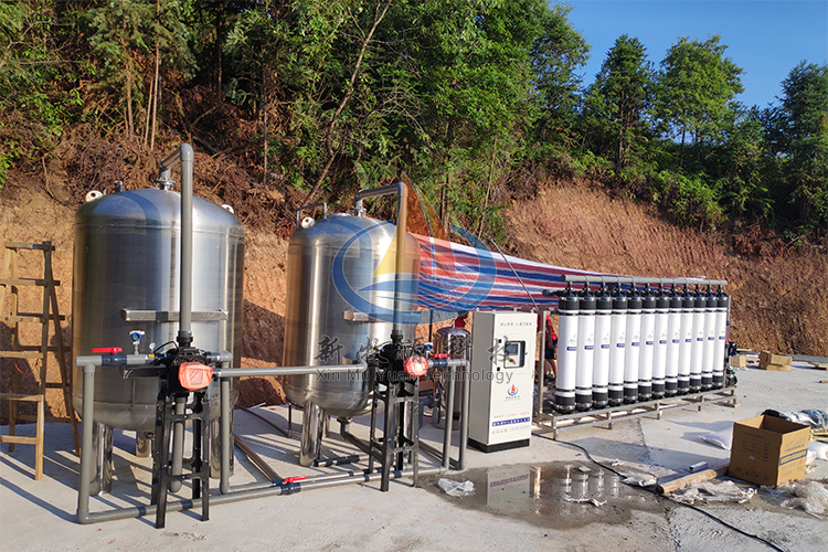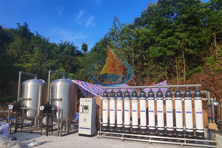 工藝:原水池-自清洗-砂濾-炭濾-UF-CLO2-凈水池