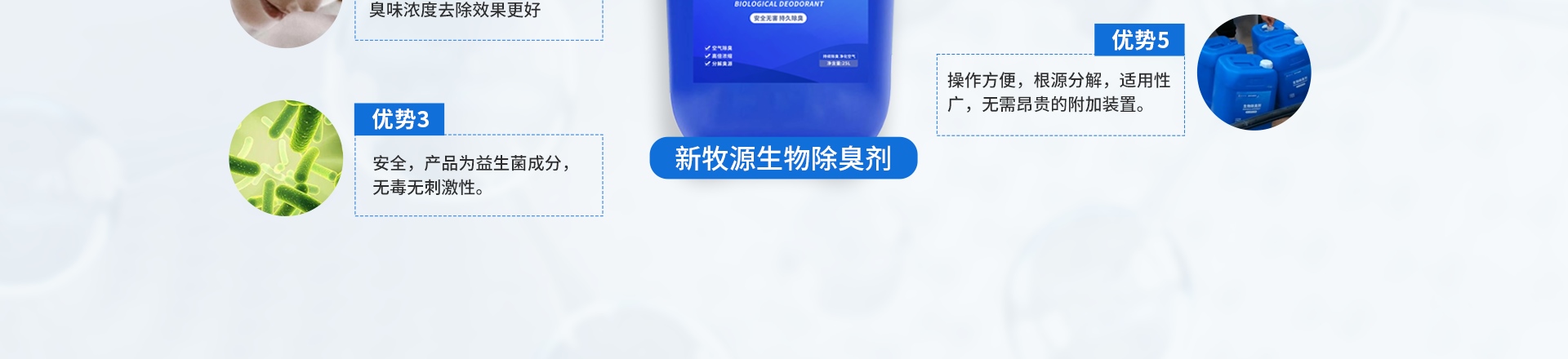 4.除臭劑可以和某些化學制劑配合使用,但不能和殺菌劑同時使用。